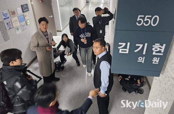 ¡ã ±¹¹ÎÀÇÈû ±è±âÇö ÀÇ¿øÀÌ 17ÀÏ ±¹È¸ ÀÇ¿øÈ¸°ü »ç¹«½Ç¿¡¼­ ÁøÇàµÇ°í ÀÖ´Â ¾Ð¼ö¼ö»ö µµÁß ±âÀÚµéÀÇ Áú¹®¿¡ ´äÇϰí ÀÖ´Ù. À̳¯ ±è°ÇÈñ ¿©»çÀÇ ¡®·ÎÀúºñºñ¿¡ °¡¹æ ¼ö¼ö ÀÇȤ¡¯À» ¼ö»çÇÏ´Â ¹ÎÁß±â Æ¯º°°Ë»çÆÀÀº ±è ÀÇ¿øÀÇ ¼ºµ¿±¸ ÀÚÅðú ±¹È¸ »ç¹«½Ç¿¡ ¼ö»ç°ü µîÀ» º¸³» ¾Ð¼ö¼ö»öÀ» ½Ç½ÃÇß´Ù. ÀÌÁ¾¿ø ±âÀÚ ¨Ï½ºÄ«À̵¥Àϸ®